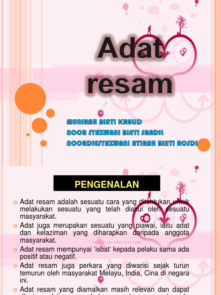 Tidak ada sesiapa yang terkecuali daripada menerima hukuman, waima anak sendiri atau ahli keluarga. Alwi bin alhady has written: Contextual translation of adat resam into english. Adat resam perkahwinan masyarakat melayu sumber elektronik. Also in the bottom left of the page several parts of wikipedia pages related to the word resam and, of course, resam synonyms and on the right images related to the word resam.